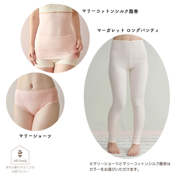 シルクとコットンの良さを感じるインナーにシルクふぁみりぃ一番人気シルク100%のマーガレットロングパンティをセットしました。